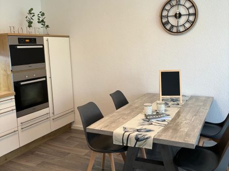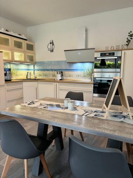 Hier wird jeder Aufenthalt zu etwas Besonderem. Genießen Sie die Harmonie von Funktionalität und Behaglichkeit, während Sie Ihre Zeit in der Ferienwohnung verbringen. Die großzügige Raumgestaltung ermöglicht es, dass Sie sich wohlfühlen und gemeinsam kochen, essen und lachen können. Lassen Sie sich von der Gemütlichkeit unserer liebevoll eingerichteten Wohnküche verzaubern!