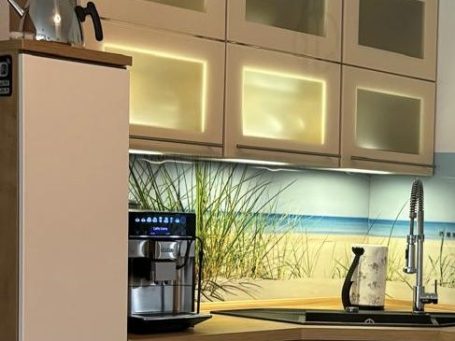Die Küche in unserer Ferienwohnung bietet eine moderne, hochwertige Ausstattung, die keine Wünsche offenlässt. Ausgestattet mit einem Kaffeevollautomaten, können Sie Ihren perfekten Kaffee jederzeit genießen. Der Dampfgarer sorgt für gesunde und nährstoffreiche Zubereitung Ihrer Speisen, während die Spülmaschine Ihnen nach dem Kochen viel Arbeit abnimmt. Der Kühlschrank mit Gefrierfach bietet ausreichend Platz für Ihre Lebensmittel und Getränke, damit Sie sich während Ihres Aufenthalts rundum wohlfühlen können.